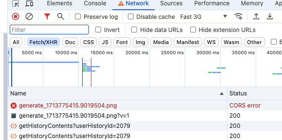 (1)의 코드를 이용하여 다운로드를 시도 시 간헐적으로 cors가 발생한다.